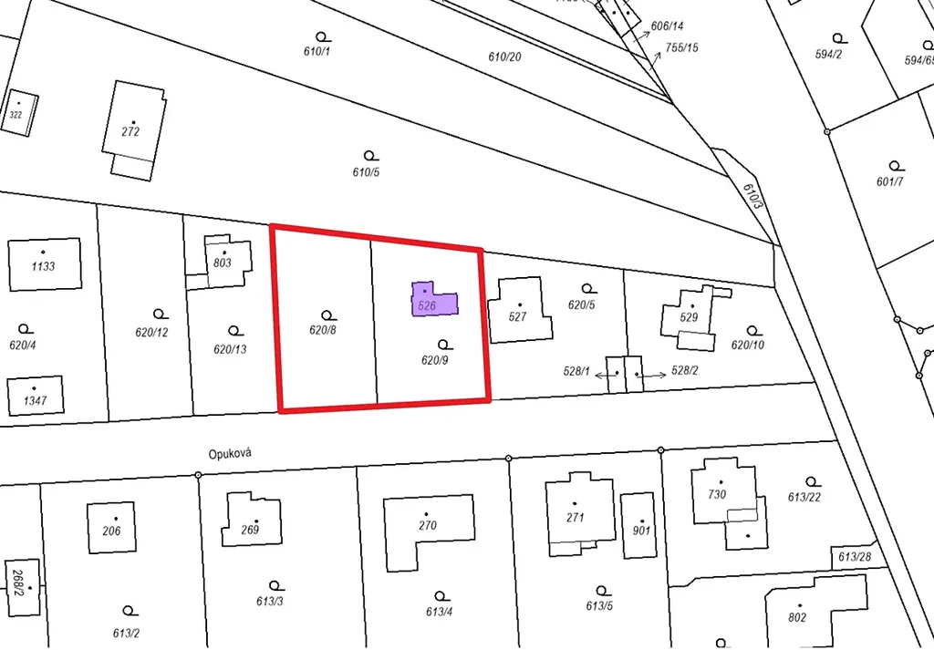 Pozemek (jedná se o soubor sousedících pozemků St. 526 o ploše 34 m2, pozemek p.č. 620/8 o ploše 505 m2 a pozemek 620/9 o ploše 469 m2) je v části obce s dokončenou výstavbou na okolních parcelách, mírně svažitý s výhledem přes okolní zástavbu. Pozemek je slunný, orientace jih až jiho-východ.