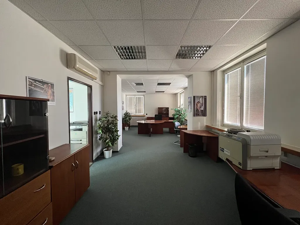 Prostorná kancelář o výměře 30 m2 se vstupem z chodby na kterou navazuje další kancelář o výměře 37 m2.