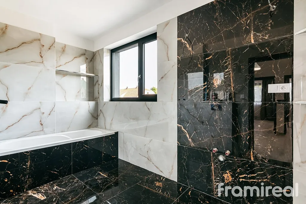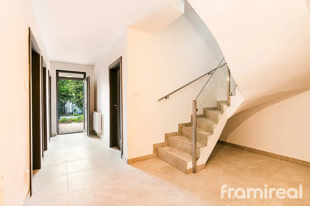 Dům je rozdělen do tří logicky uspořádaných podlaží. V přízemí se nachází prostorné zádveří s dostatkem místa pro odložení věcí, dále následuje velkorysý obývací pokoj s přípravou pro kuchyň a jídelnu. Díky velkoformátovým oknům je interiér prosvětlený a lodžie nabízí ideální prostor pro ranní kávu nebo večerní relaxaci. Přízemí dále doplňuje samostatná toaleta a příprava na předokenní žaluzie, které oceníte zejména v letních měsících.