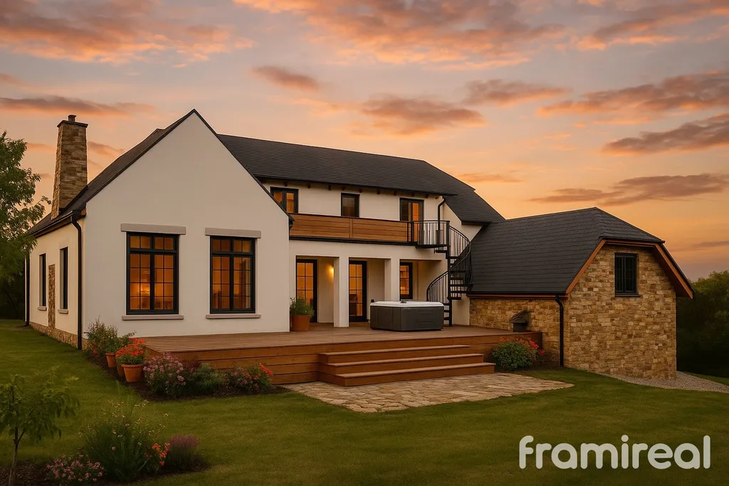 Projektovaný dům o podlahové ploše 292 m² nabízí velkorysé a promyšlené dispoziční řešení: čtyři samostatné ložnice, každá s vlastní koupelnou a toaletou, dvougaráž s přímým vstupem do domu, technické zázemí a množství úložného prostoru. Dominantou domu je 95 m² velký obývací prostor s otevřeným krovem, krbem, jídelnou a barem – srdce celého domu ideální pro rodinné večery i společenská setkání. Z jihozápadně orientované terasy se otevírá působivý výhled na hladinu Lipna a panorama Šumavy.