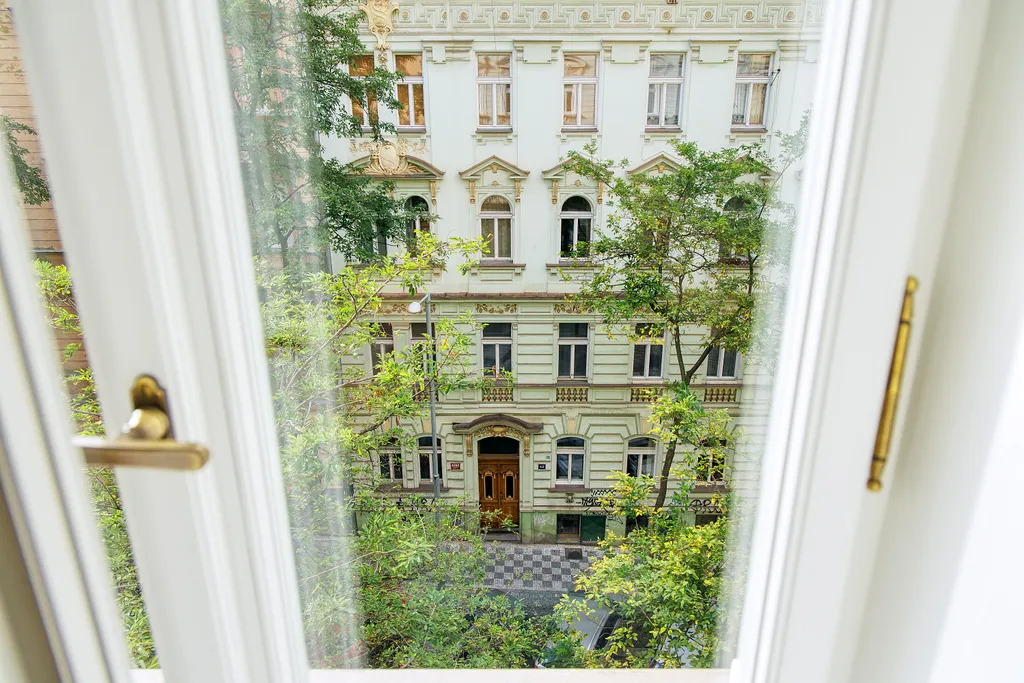 Byt aktuálně prošel nákladnou a velmi citlivou rekonstrukcí s důrazem na zachování historických prvků spojených s tímto jedinečným místem (nové dubové parkety, nová dřevěná okna s trojsklem, pískovaná skla v nových interiérových dveřích, kvalitní dlažba a obklady, sanitární technika od renomovaných výrobců, rozvody sítí a médií, plynový kotel BOSCH, který je možno ovládat přes mobilní aplikaci, luxusní kuchyňská linka včetně spotřebičů Siemens…).