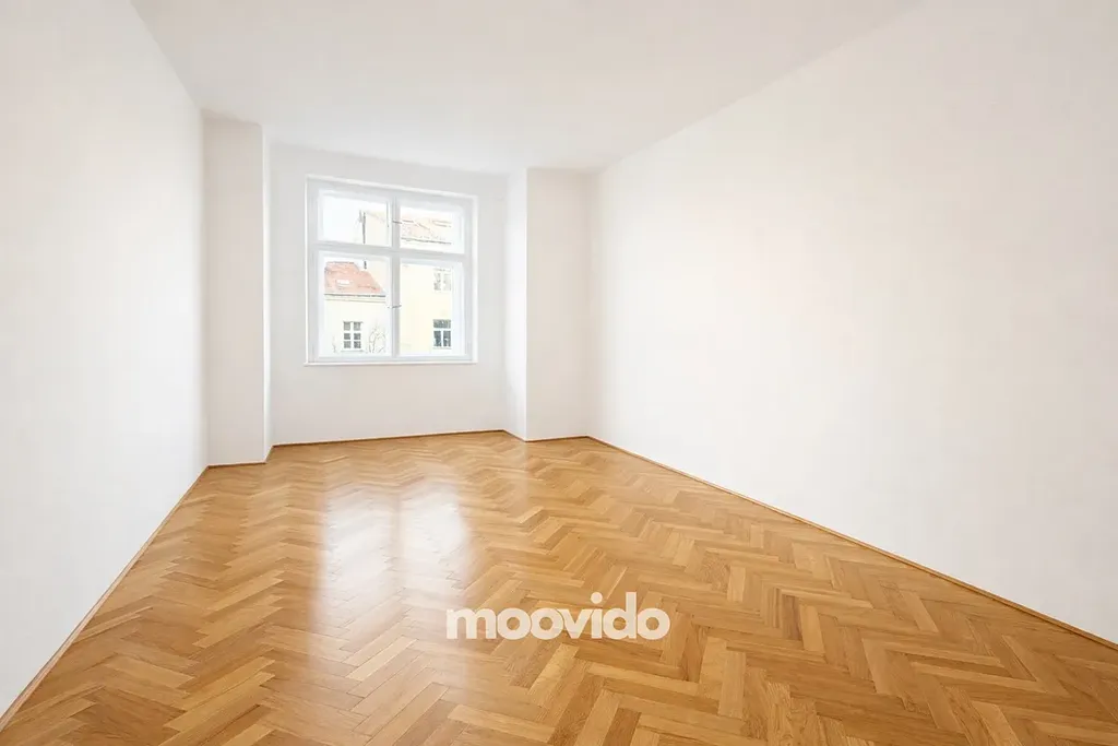 Byt se nachází ve 3. patře udržovaného cihlového domu. Byt je nezařízený, na podlahách jsou nově vybroušené parkety.