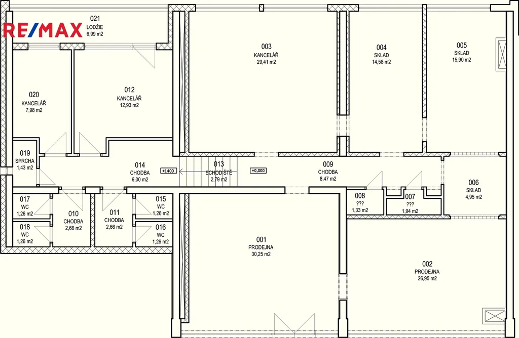Prostory jsou situovány do 1. NP panelové budovy, a jejich celková podlahová plocha činí 175,3 m2 (bez započítané plochy lodžie, která činí 5,44 m2).