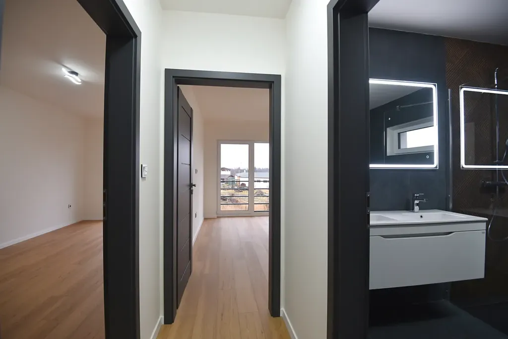 Ve druhém nadzemním podlaží se nachází tři ložnice o výměrách 10,3 m2, 13,5 m2 a 15,5 m2 a prostorná koupelna v moderním stylu se sprchovým koutem i vanou. Podkroví disponuje dostatkem prostoru pro uložení všech sezonních věcí.