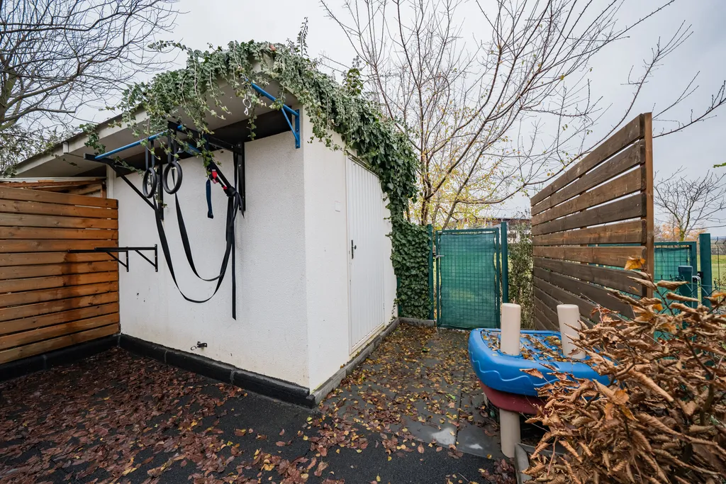 Zmiňovaná terasa domu prošla v nedávné době úpravou, je zastřešená a v jarních a letních měsících je skutečně krásná. Zahradní úložný domek v zadní části zahrady je praktický.