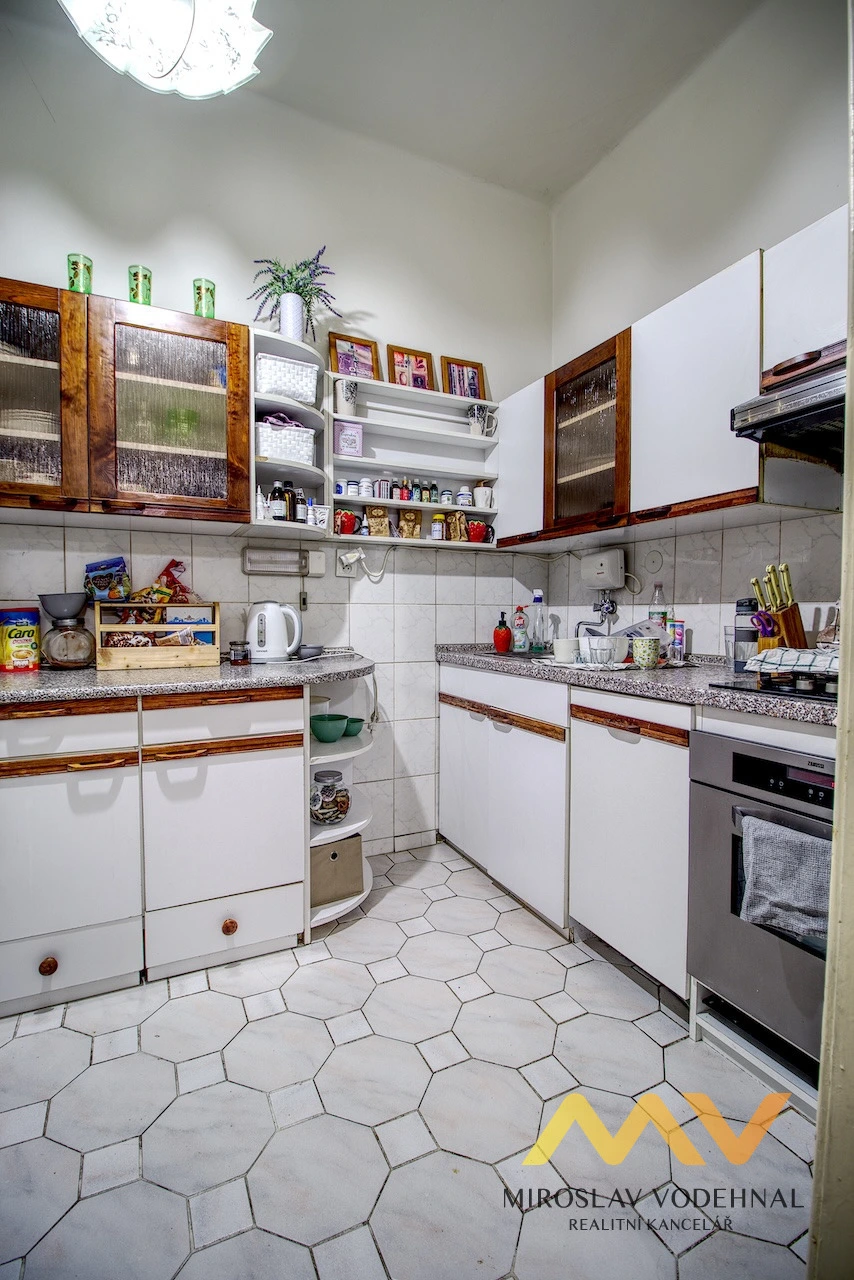 Dispozice: 2x pokoj, kuchyň, koupelna, WC, předsíň. Jedná se o částečně zařízený byt s průchozími pokoji, nová plovoucí podlaha, nová plastová okna. Kuchyň je vybavena starší kuchyňskou linkou s novým komb. sporákem, lednicí s mrazákem, mikrovlnnou troubou. V obývacím pokoji je, jídelní stůl se židlemi. V ložnici velká šatní skříň. Koupelna s vanou, toaleta je samostatně. V prostorné předsíni je prostor na pračku i sušičku prádla. Internet zaveden (300 Kč/měsíc), vytápění lokální (nové wafky), ohřev vody el. bojlerem. Ve vnitrobloku za domem je zeleň a hřiště. Sklep není k dispozici.