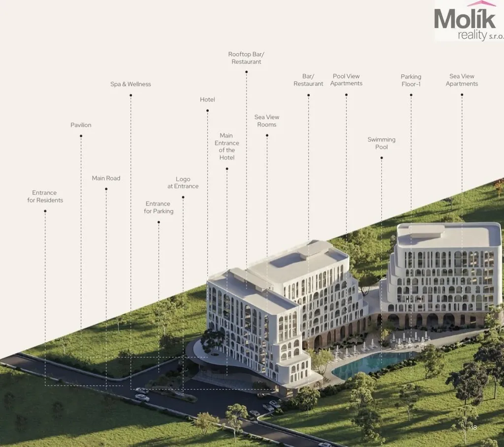 Nabízíme k prodeji největší apartmán v celém projektu, jedná se o jednotku 3+kk s výhledem na moře o celkové ploše 180.67 m2, který se nachází ve 4.patře budovy s výtahem. Apartmán disponuje 2 ložnicemi a ze všech místností je vstup na balkón o velikosti 7ž.27 m2.