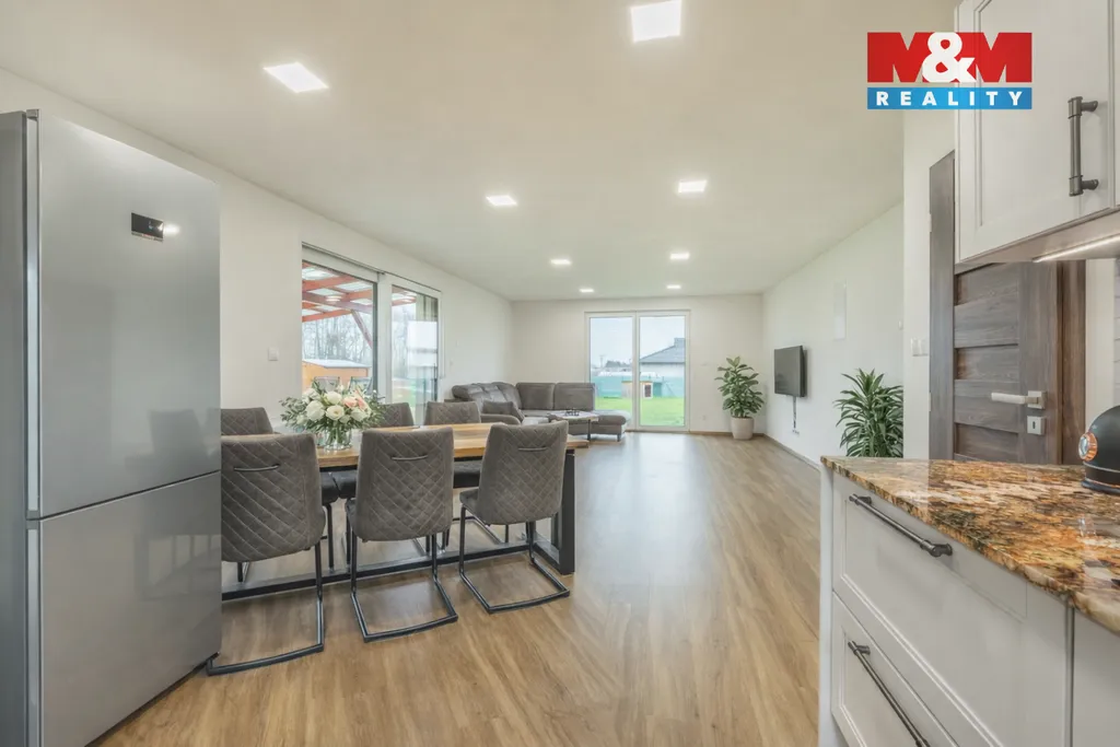 Takto může vypadat Váš nový domov. Přibližně 25 minut z centra Mladé Boleslavi, v klidné obci Vlčí Pole, nabízíme k prodeji dokončenou novostavbu, která spojuje moderní architekturu, kvalitní materiály a velkorysý prostor. Nemovitost je připravena k okamžitému nastěhování. Majitelé se z osobních důvodů stěhují na Moravu, což vytváří jedinečnou příležitost k pořízení této výjimečné rezidence. Dům s užitnou plochou 213 m² je zasazen do rozlehlé, udržované zahrady o velikosti 1 480 m² a disponuje prostornou garáží o výměře 44 m². Dispozice domu nabízí šest obytných místností rozložených do dvou nadzemních podlaží. Stavba je realizována z kvalitního konstrukčního systému Liapor, který zajišťuje stabilní a příjemné vnitřní klima po celý rok. O efektivní vytápění se stará tepelné čerpadlo, podlahové topení je instalováno v celém domě a v obývacím pokoji je příprava na krb. Osobní návštěva Vám umožní ocenit kvalitu a prostor této nemovitosti. Prosím kontaktujte mě pro termín prohlídky.