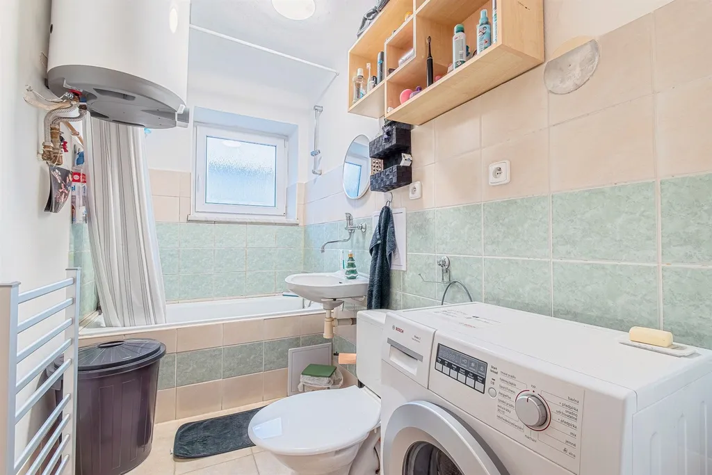 Ohřev vody elektrický bojlerem (umístěným v koupelně), vytápění bytu je elektrické (olejové radiátory v místnostech), okna plastová, koupelna s vanou a WC. Budova je zateplená, bez výtahu.
