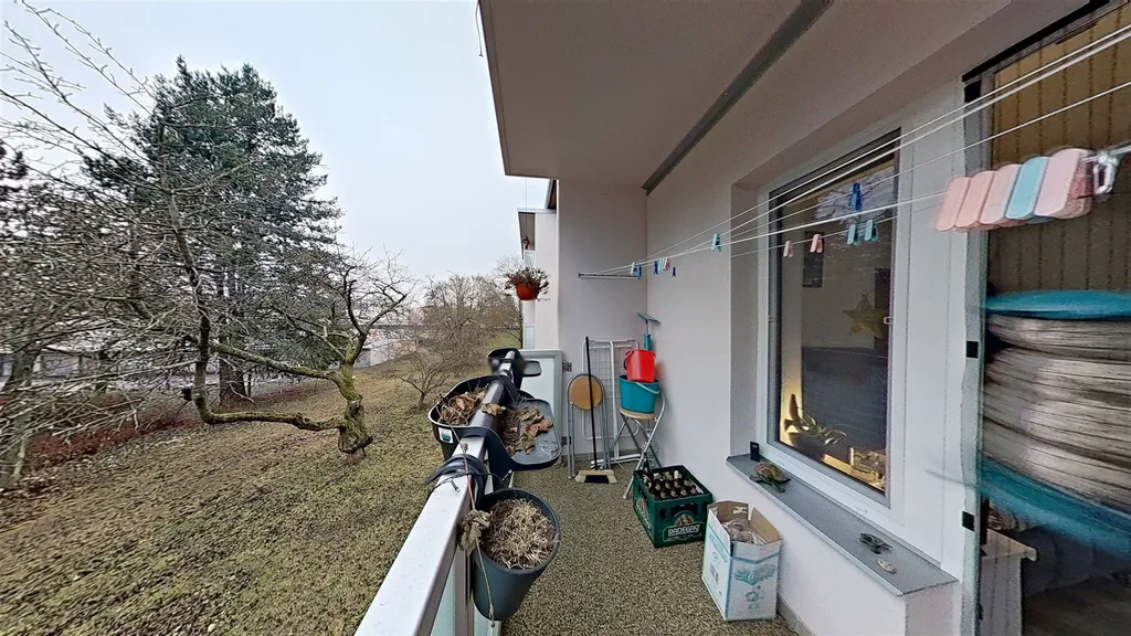 Dispozice: vstup, chodba, kuchyně průchozí, obývací pokoj s výstupem na lodžii, ložnice. Dále prostorná lodžie orientovaná na východ a sklep v suterénu budovy.