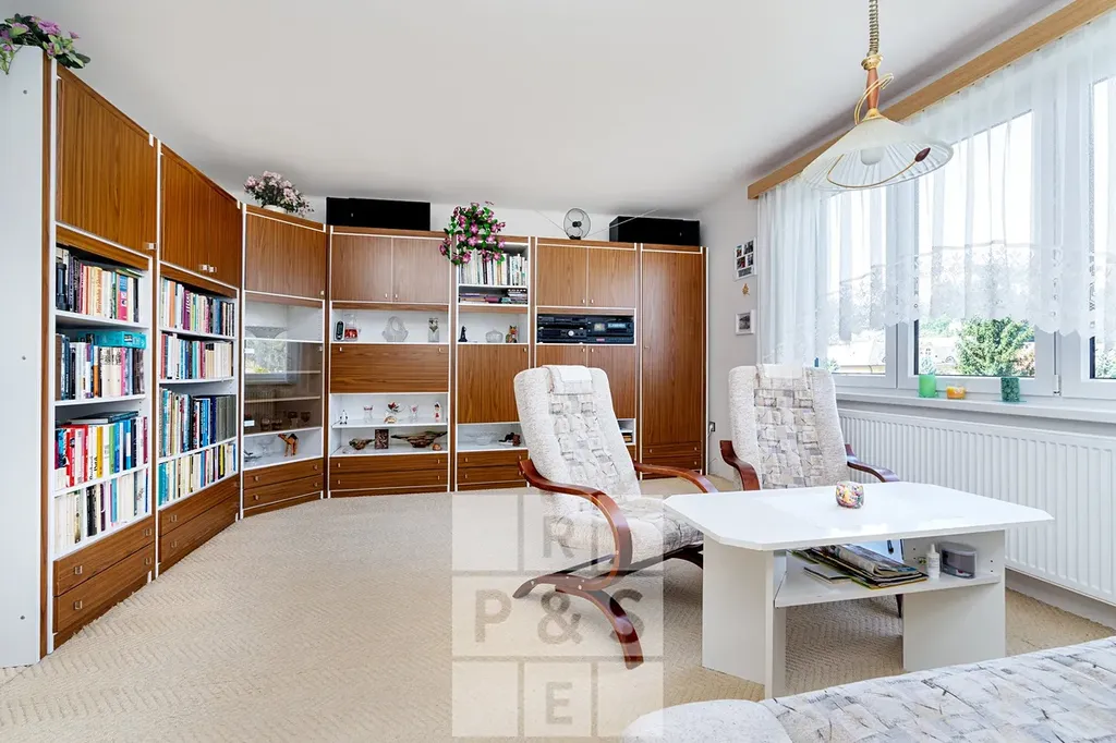 Suterén ( 85 m²) - kotelna, pokoj, pracovna, 4 sklepní prostor a lodžie se vstupem na zahradu.