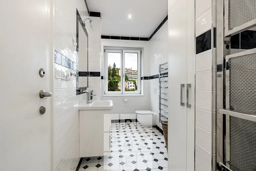 Byt si zachoval atmosféru první republiky – originální špaletová okna, krásné dřevěné podlahy a dochovaný nábytek z 30. let. Dispozice bytu je navržena chytře: dva pokoje jsou neprůchozí, což poskytuje dostatek soukromí, a zároveň je byt příjemně průchozí kolem dokola.