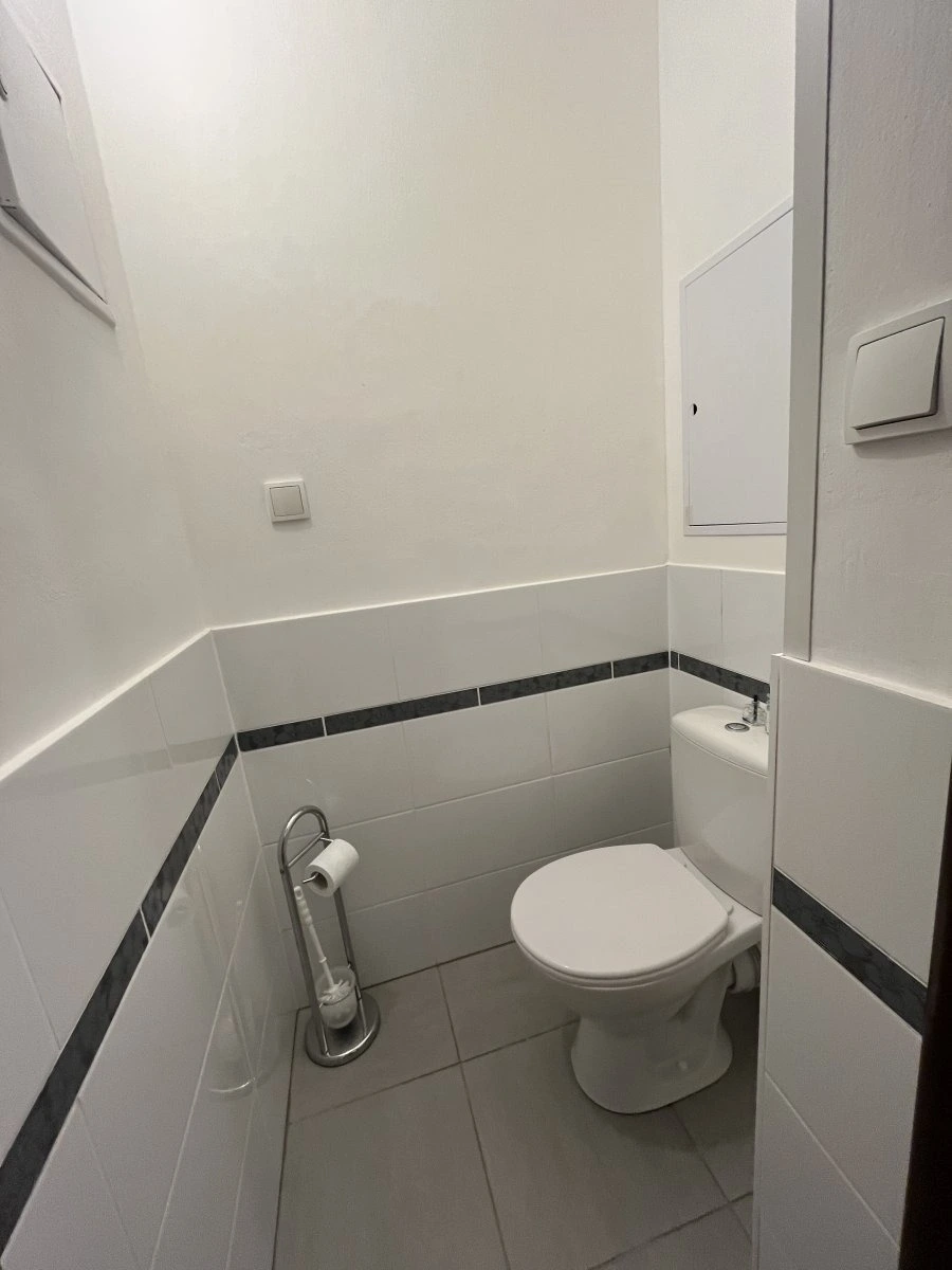 Koupelna je vybavena umyvadlem, sprchovým koutem a vestavěným úložným prostorem. Toaleta je samostatná. V chodbě se nachází šatní stěna s dostatkem úložného prostoru.