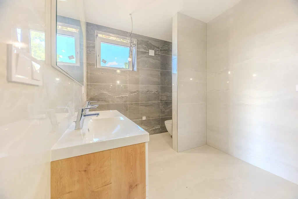 Luxusní rodinný dům se dvěma nadzemními podlažími a jedním podzemním nabízí 7 obytných místností, 4 koupelny, 2 samostatné toalety a podzemní podlaží má přípravu na vybudování soukromého SPA.