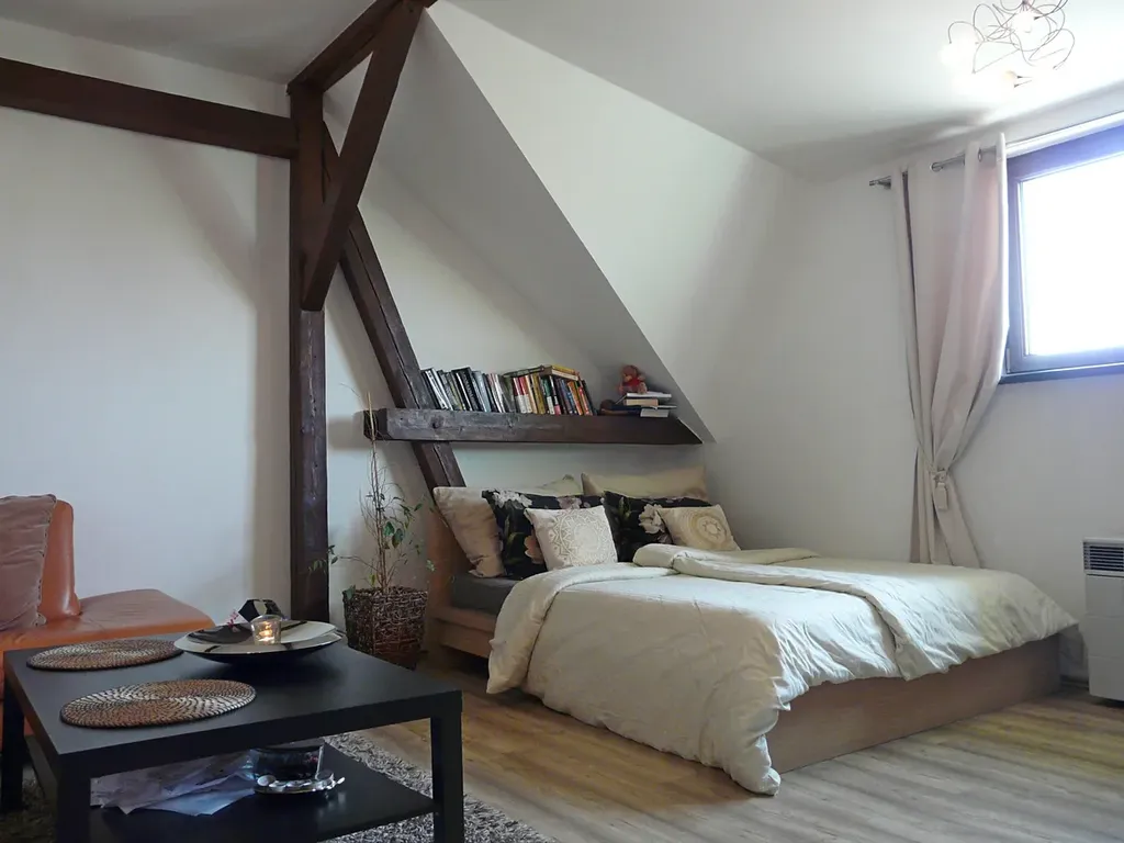 Byt je plně vybaven - postel, sedačka, stůl, židle, televize, prostorná vestavěná skříň, botník.
