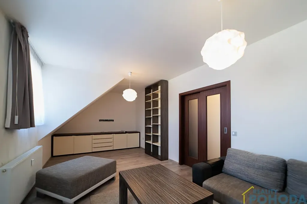 Aktuálně se byt skládá ze vstupní chodby s nepřehlédnutelným schodištěm, velké kuchyně se vstupem na balkón, prostorného obývacího pokoje, ložnice, dětského pokoje, nadstandartní koupelny a samostatné toalety. V kuchyni se nachází kuchyňská linka na míru s kvalitními vestavěnými spotřebiči: indukční varná deska, trouba, myčka, lednice s mrazákem, kávovar, mikrovlnná trouba, digestoř a kameninový dřez. Byt nabízí velmi prostornou a vkusně řešenou koupelnu s vanou, sprchovým koutem, pračkou a sušičkou Bosch (spotřebiče zůstávají v bytě, stáří cca 5 let).