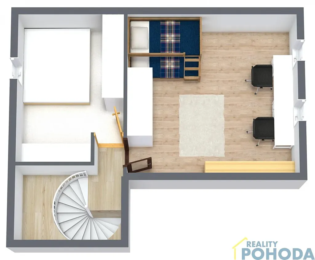 V horním patře je k dispozici klimatizace (instalovaná v dětském pokoji, vychladí ale celé horní patro). V horním patře jsou nová plastová střešní okna, ostatních místnostech pak původní plastová. Okna místností bytu jsou orientována na V a Z. Útulnou a nezaměnitelnou atmosféru bytu v horním patře dodávají šikminy podkrovních pokojů, které prostor objímají a vytvářejí pocit hřejivého, intimního útočiště, kam se budete rádi vracet každý den. Byt disponuje krásným, velkým balkónem, který poskytuje příjemný prostor pro relaxaci.