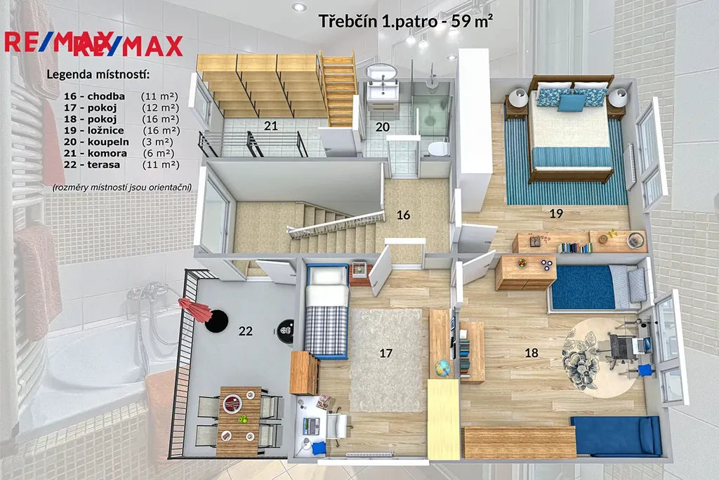 V exkluzivním zastoupení majitele nabízíme k prodeji dům se zahradou v Třebčíně nedaleko Olomouce. Vícepodlažní dům s půdou je částečně podsklepený s garáží, dílnou a skladovými prostory. Vytápění je ústřední s plynovým kotlem umístěným v suterénu a dále je provedena příprava pro krbová kamna. Dům je napojen na veřejnou kanalizaci, vodovod, plyn a elektřinu. V domě jsou plastová okna, laminátové podlahy a sádrokartonové podhledy. V 1. NP se nachází obývací pokoj s jídelnou, kuchyně, koupelna (vana, sprcha, umyvadlo, WC), vstupní hala, WC, prádelna. V přístavbě 1. NP se nachází pracovna, předsíň, šatna, koupelna (není dokončena, příprava pro sprchu, umyvadlo a WC). V této přístavbě lze řešit samostatnou obytnou jednotku nebo prostor pro podnikání. Ve 2.NP se nachází 3x ložnice, koupelna (sprcha, umyvadlo), skladový prostor s možným užitím jako šatna. Půda je svojí rozlohou a charakteristikou určená k případné půdní vestavbě.