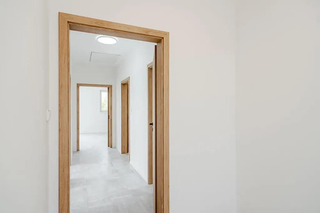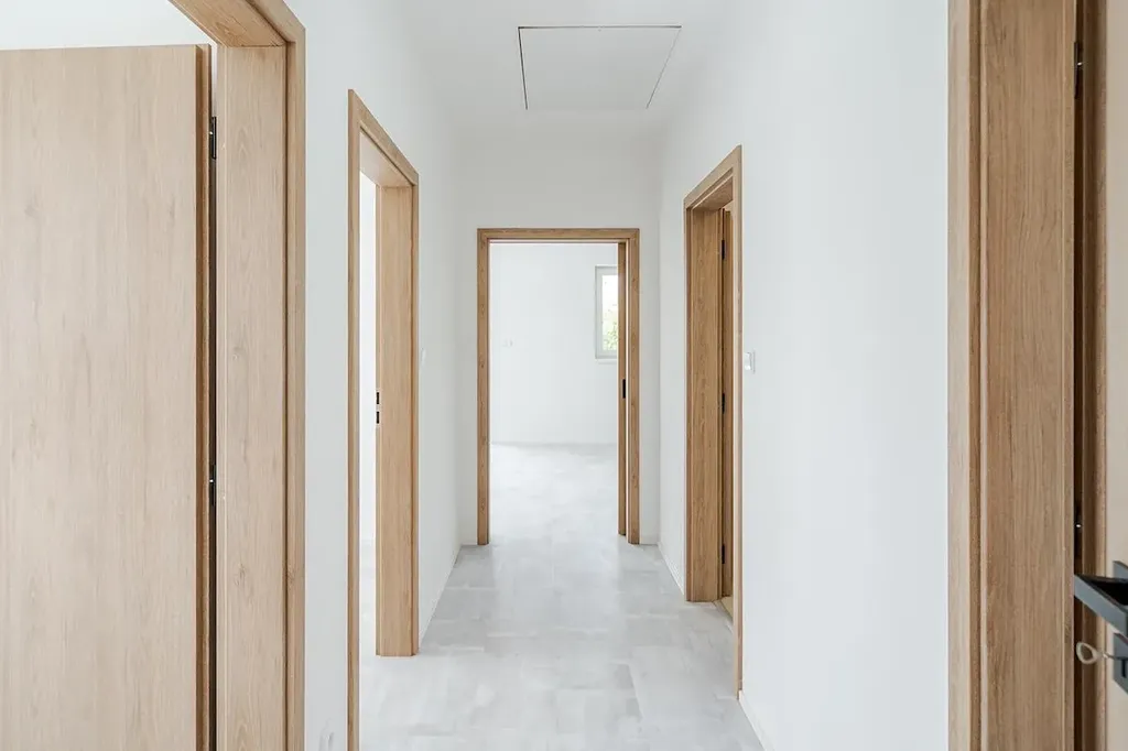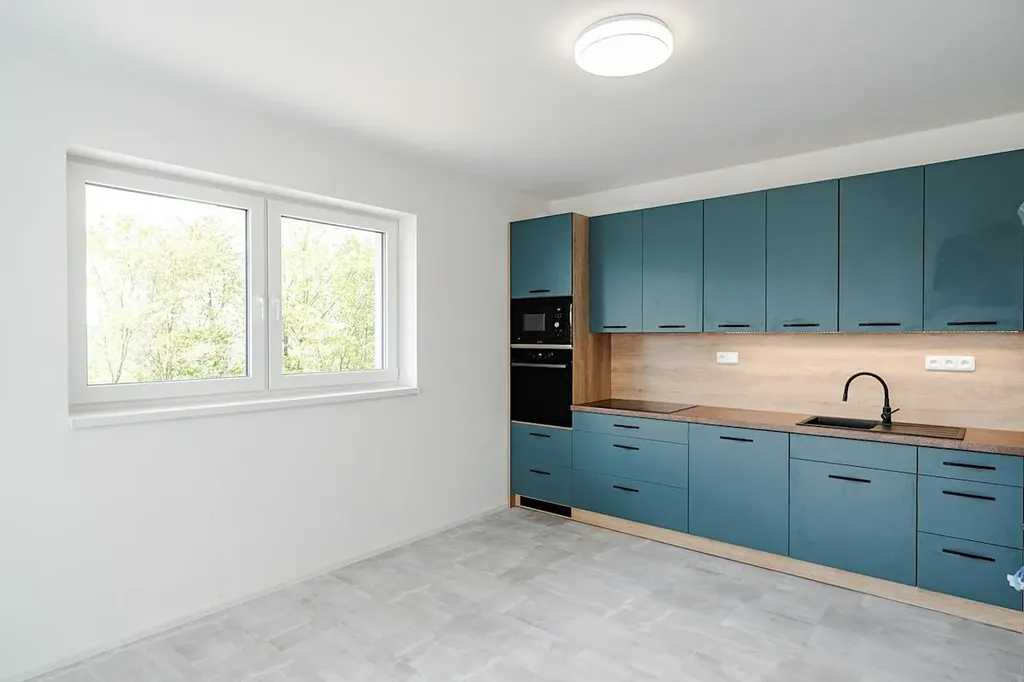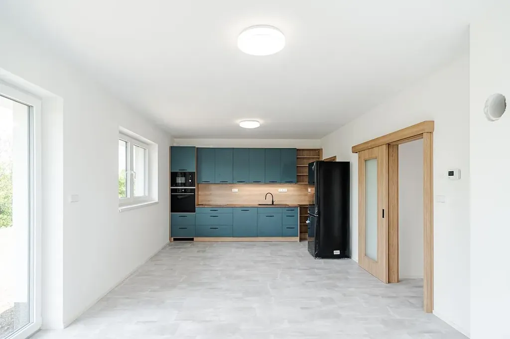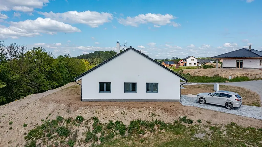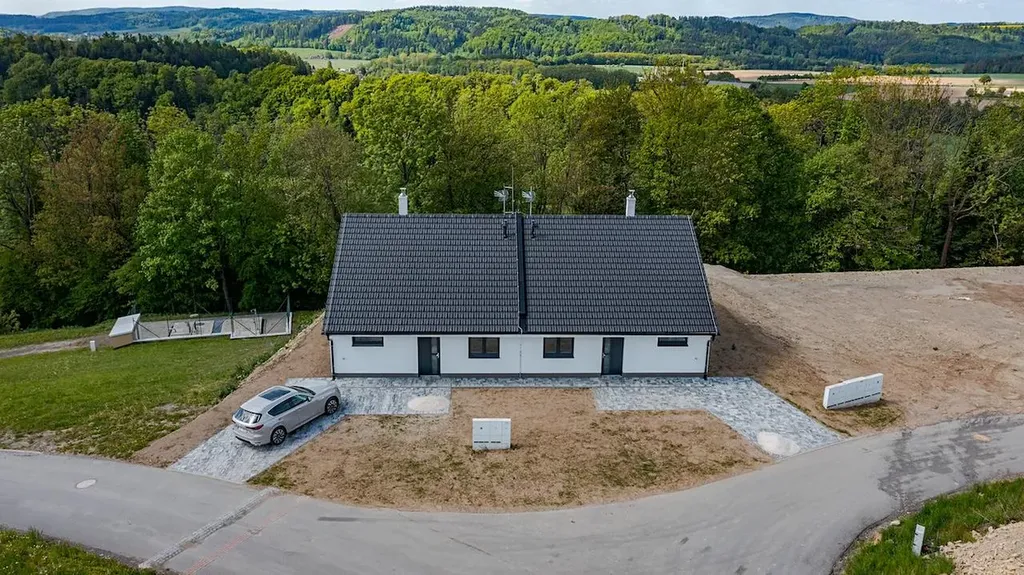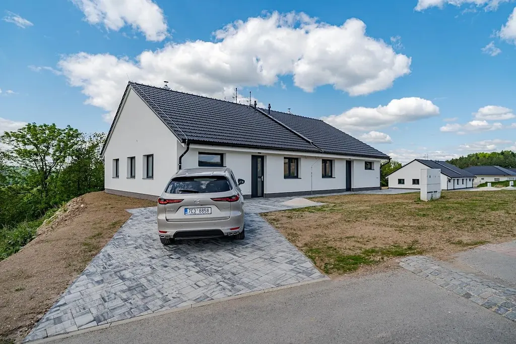 Exkluzivně nabízíme k prodeji kompletně dokončenou a vybavenou jednotku v rámci developerského projektu Domy Mistrovice. Jedná se o novostavbu s dispozicí 4+kk o podlahové ploše jedné jednotky cca 82 m². Součástí jednotky je terasa a vlastní zahrada. Projekt zahrnuje celkem čtyři jednotky ve dvou dvojdomech. Jednotka je kompletně dokončená a připravená k okamžitému nastěhování – noví majitelé si mohou přivézt nábytek a bydlet. Součástí standardu je hotová kuchyňská linka včetně vestavných spotřebičů, dokončené vinylové podlahy, podlahové vytápění, interiérové dveře, obklady, dlažba, sanita, kompletní elektroinstalace (zásuvky, vypínače, osvětlení), rozvody vytápění včetně plynového kotle a navíc i fotovoltaické panely na střeše, které výrazně přispívají k energetické efektivitě domu. Dispozičně je dům řešen velmi prakticky – po vstupu se ocitneme v zádveří, ze kterého se vstupuje do centrální chodby. Po pravé straně se nachází ložnice a koupelna s toaletou, po levé pak další dvě ložnice. Rovně se pokračuje do hlavní obytné části – prostorného obývacího pokoje s kuchyňským koutem a jídelnou. Odtud je vstup na terasu a do zahrady. Domy jsou napojené na elektřinu, vodovod, obecní kanalizaci a plyn. Každý dvojdům je umístěn na vlastní parcele – celková výměra parcel je 1344 m² a 1219 m². Každá jednotka tak získá ideální polovinu příslušného pozemku, tedy 672 m², respektive 610 m². Obec Mistrovice se nachází mezi městy Letohrad a Jablonné nad Orlicí – od Letohradu je vzdálena cca 5 km a od Jablonného 3 km. Blízkost Jablonného nad Orlicí poskytuje ideální možnosti pro milovníky turistiky a výletů – oblast Suchého vrchu a Bukové hory je vyhledávanou lokalitou v rámci Orlických hor. Dopravní dostupnost zajišťuje autobusové spojení navazující na vlakové linky a další regionální dopravu. V obci je k dispozici koupaliště, sportovní hřiště, stadion, knihovna i kostel. Více informací o projektu Vám rádi sdělíme telefonicky nebo osobně při prohlídce.