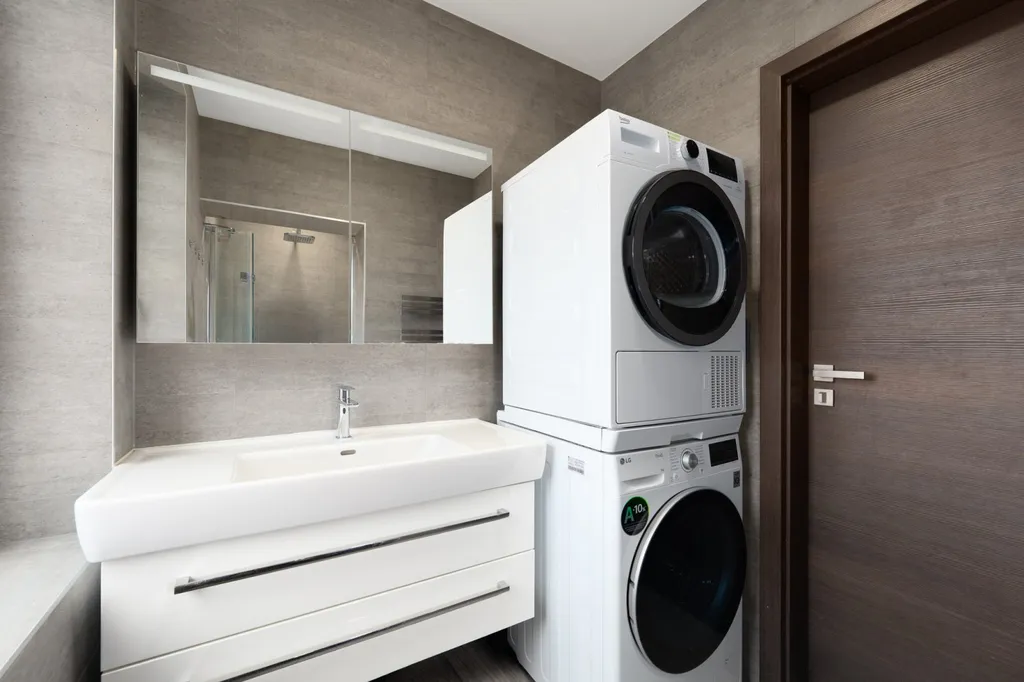 Velkým benefitem bytu je vysoce výkonná klimatizace značky Fujitsu, která umožňuje nejen