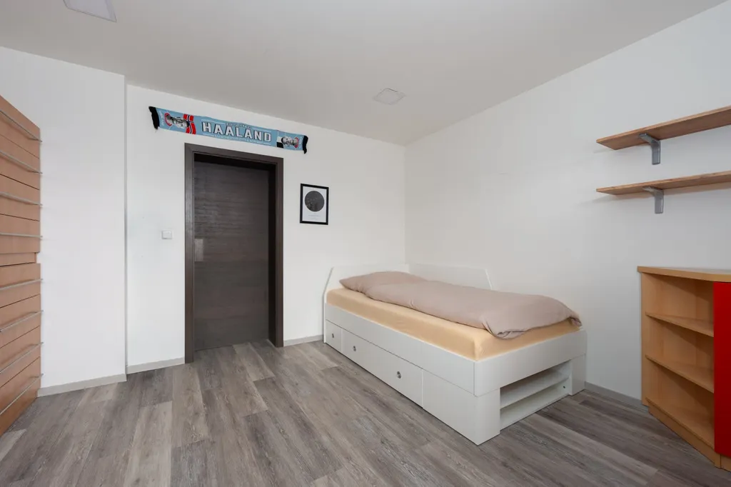 Byt nabízí dva samostatné pokoje, které lze využít jako ložnici a dětský pokoj či pracovnu.