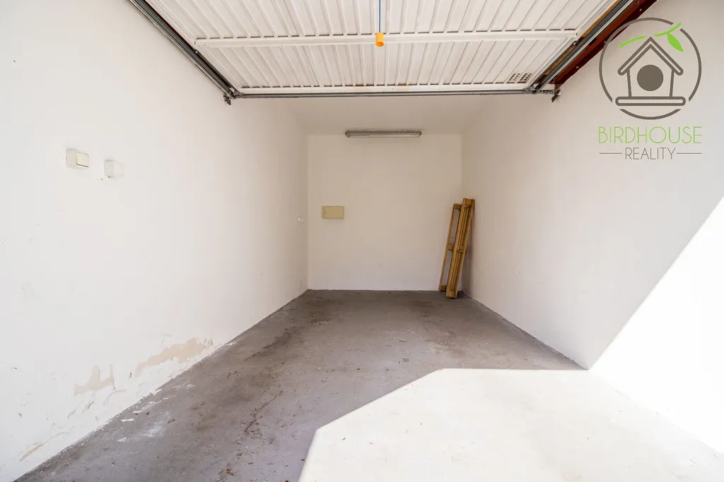 K bytu náleží vlastní garáž o velikosti 14,17 m² (výška 2,73 m; výška vjezdu 2,07 m; šířka 2,69 m; délka 5,27 m) s elektřinou a úložným prostorem, sklep 2,56 m², a také podíl na pozemku umožňující parkování. V domě je k dispozici společná kočárkárna a udržovaný vnitroblok s dětským hřištěm a zahradou, která je ideálním místem pro relax.