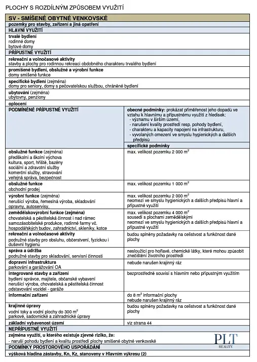 Územní Plán: Parcela je v územním plánu vedená jako plochy smíšené obytné. To umožňuje stavbu rodinného domu s jedním podlažím + podkrovím s maximální celkovou výškou 9 metrů.