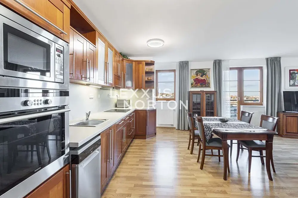 Nabízíme prostorný zařízený byt 3+kk s terasou (20 m2) o rozloze 110 m2 situovaný v 7. nadzemním podlaží rezidenční budovy disponující 24/7 recepcí a výtahem ve vyhledávané lokalitě Prahy 6 - Břevnov v blízkosti parku Ladronka.