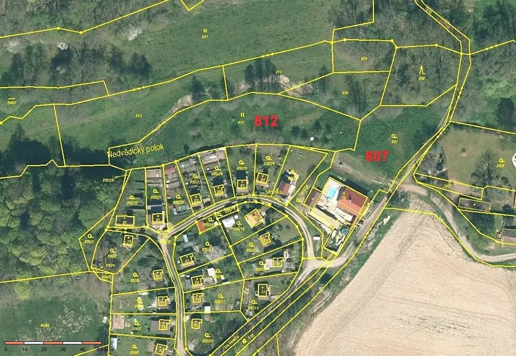 Nabízíme k prodeji pozemek o celkové výměře 4703 m2 v oblasti Na Veselce cca 2 km severozápadně od Soběslavi, jedná se o pozemek č. parc. 807, zahrada o výměře 1826 m2 a pozemek č. parc. 812, trvalý travní porost o výměře 2877 m2, v katastrálním území Nedvědice u Soběslavi, dle územního plánu obce je pozemek č. parc. 807 v území, které je určeno k výstavbě rekreačního objektu o zastavěné ploše do 95 m2 a k vedlejším stavbám, na pozemku se nacházejí dvě starší studně – kopaná hl. 6 m a roubená hl. 2 m, elektro na hranici pozemku (elektropilíř), pozemek není oplocený, na severní hranici pozemku protéká potůček, řeka Lužnice cca 600 m (mimo zátopové území).