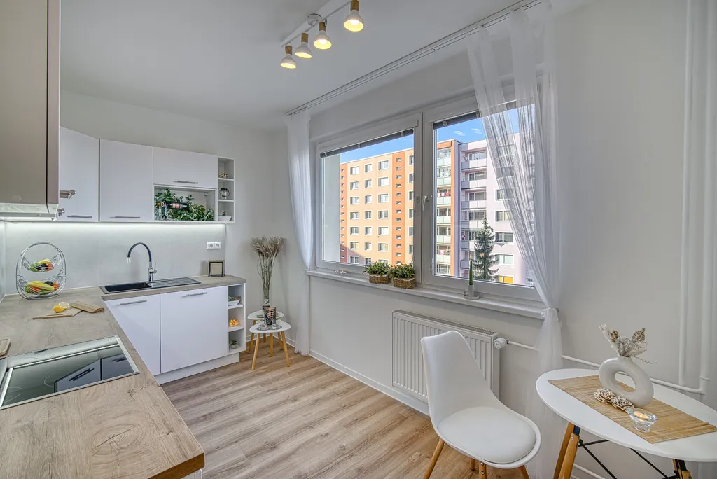 Nabízíme k pronájmu krásný byt 3+1 se zasklenou lodžií, po kompletní rekonstrukci. Byt se nachází ve 3. nadzemním podlaží (2. patře) panelového domu a disponuje novou kuchyňskou linkou se sklokeramickou varnou deskou, elektrickou pečící troubou, myčkou a digestoří. V koupelně se nachází vana, umyvadlo se skříňkou, koupelnová skříňka se zrcadlem. Toaleta je samostatně a nachází se u ní i malé umyvadlo. Součástí pronájmu je i sklepní kóje ve společných prostorách domu. Byt není vybaven nábytkem. Nájemné zde činí 14 000,- Kč, záloha na služby 3 500,- Kč pro 1 osobu + 500,- Kč každá další osoba. Vratná kauce je 25 000,- Kč. Při rezervaci se platí provize realitní kanceláři ve výši 17 000,- Kč. Elektřina je součástí záloh na služby. Byt je volný ihned. V případě zájmu o prohlídku či více informací neváhejte kontaktovat makléře.