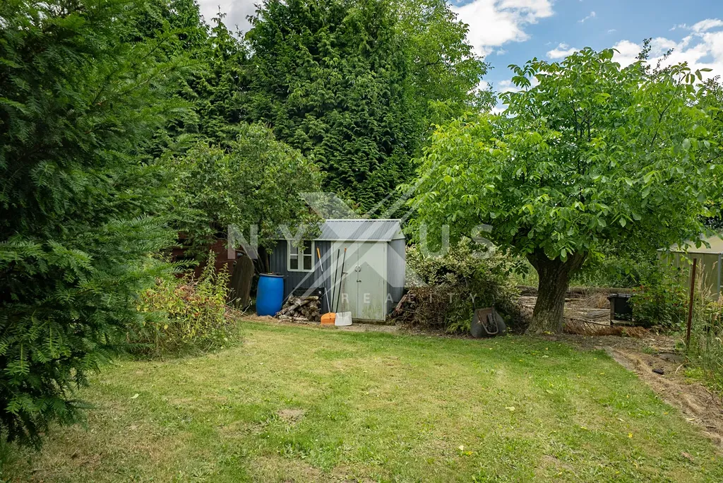 Výhodou je zděná chata a k relaxaci vybízí také krásný altán s vířivkou. Dále vlastní jezírko s filtrací a ohřevem na koupání , které je připojené na rozlehlou terasu 200 m² s pergolou, kde je příjemné dát si ranní kávu a užívat si klid tohoto kouzelného místa. Zahrada je osazena vzrostlými tújemi, okrasnými a ovocnými stromy. K dispozici je i projekt na rozšíření současné stavby. Na pozemku se nachází ještě další základová deska 100 m², kde byla zamýšlena výstavba garáží.