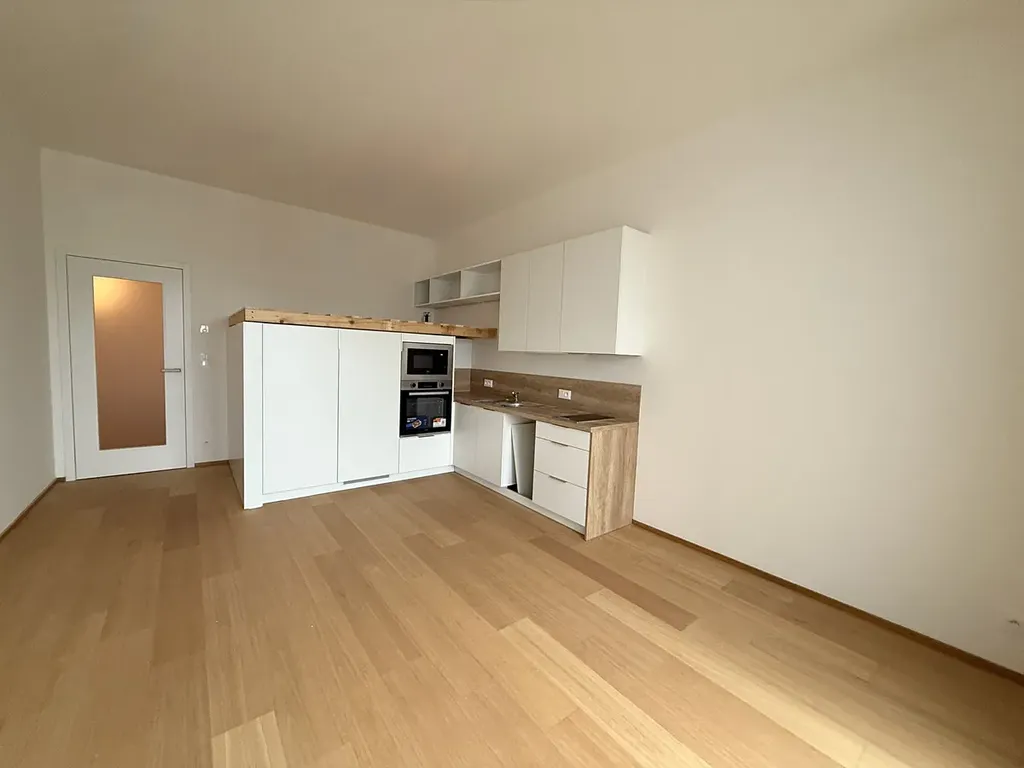 Pronájem zcela nového bytu 1kk s terasou, sklepem a možností garážového stání v Praze 9 – Hrdlořezy, ulice V Třešňovce 419/7. Byt o velikosti 34,05 m² + terasa 5,77 m² se nachází v 10. patře novostavby, pravě dokončený a připravený k prvnímu užívání. V bytě jsou dřevěné podlahy, podlahové vytápění, rekuperace a moderní kuchyňská linka na míru včetně všech zabudovaných spotřebičů (myčka, varná deska, trouba, digestoř, lednice). Součástí je vestavěné spací patro, které prakticky rozšiřuje obytný prostor, pod patrem se nachází velkorysý úložný prostor, což jistě oceníte, v předsíně bude ještě velká vestavěná šatní skříň. K bytu náleží také sklep a garážové stání je možné pronajmout za příplatek. Terasa je orientovaná do vnitrobloku se zelení, zajišťuje soukromí a příjemný výhled. Před domem je dětské hřiště a v okolí je řada míst pro sport i procházky.
