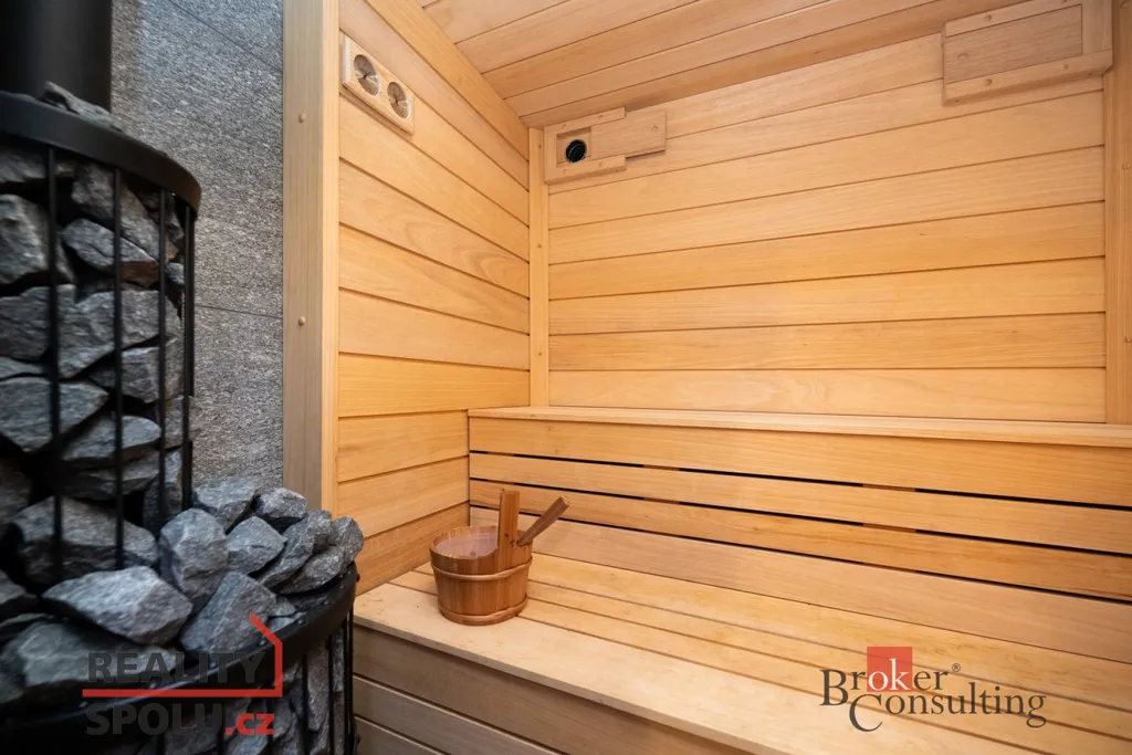 Stavba a bazén jsou vytápěny energeticky úsporným tepelným čerpadlem. Finská sauna vytápěná dřevem pomocí kamen Harvia a venkovní gril na plyn poskytují pohodlí pro venkovní vaření.