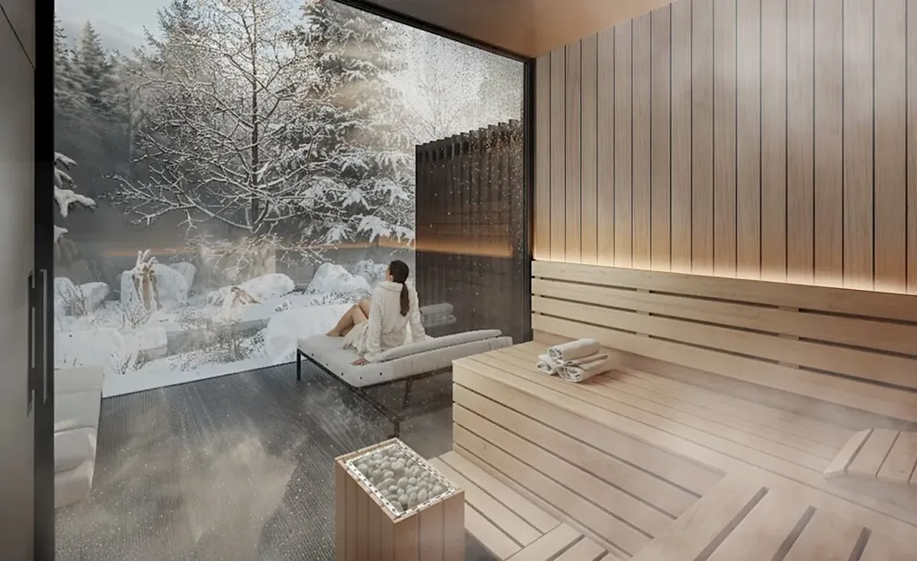 Jen pár kroků od vašeho apartmánu, v chladivém stínu lesa, na vás bude čekat několik privátních kabin se soukromou saunou, posilovnou nebo vyhřívanou kádí. Dopřejte si maximální relax za zvuků horského potoka.