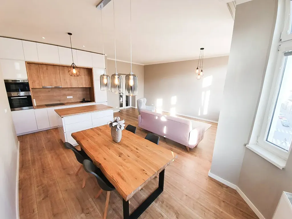 Prostorná dispozice 2+kk poskytuje dostatek prostoru jak pro jednotlivce, tak pro pár. Interiér je světlý, moderní a laděný do nadčasového stylu. Byt je vybavený dle fotografií, součástí je také myčka i pračka, vlastní plynový kotel přímo v bytě a dřevěné podlahy, které podtrhují elegantní charakter prostoru.