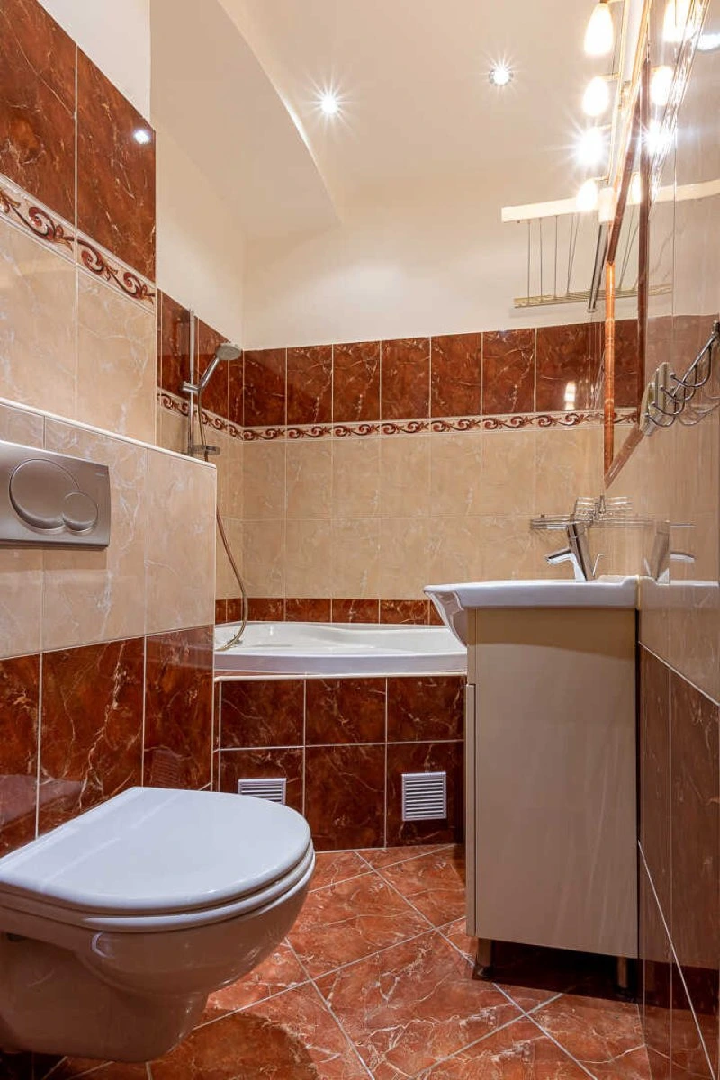 Byt se nabízí částečně vybavený. Prostorná kuchyňská linka disponuje vestavěnou elektrickou troubou, plynovým sporákem a digestoří. Součástí prvního pokoje je velká šatní skříň a rozlehlá obývací stěna s dostatkem úložného prostoru. V druhé ložnici najdeme praktické spací patro. Poslední pokoj je zařízený nočními stolky. V předsíni jsou také úložné prostory. V krásné koupelně se nachází rohová vana, umyvadlo a toaleta.