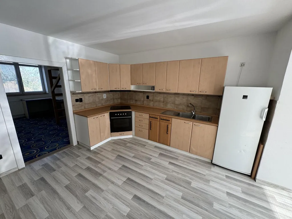 Vcházíme vchodovými dveřmi přímo prostorné předsíně o výměře cca 9,73 m², ze které je vstup do dominanty domu, kuchyně s obývacím pokojem o výměře cca 17,40 a jídelny o výměře cca 8,24 m². Kuchyňská linka je vybavena sporákem, troubou a ledničkou s mrazákem. Z obývacího pokoje vcházíme do další obytné místnosti, o výměře cca 14,77 m², z níž je vstup do samostatné místnosti, která dříve sloužila jako ložnice. Její výměra činí cca 14,86 m². Tato místnost disponuje velkou šatnou s regály na uložení oblečení a dalších věcí. Dále je z obývacího pokoje vstup do samostatné místnosti, která dříve sloužila jako dětský pokoj a je vybavena dvěma patrovými postelemi a psacím stolem o výměře cca 13,44 m². V neposlední řadě se z obývacího pokoje s kuchyní dostaneme i do další chodby o výměře cca 6,36 m², ze které je vstup do prostorné koupelny o výměře cca 10,38 m². Její součástí je velký sprchový kout, umyvadlo, vestavěné skříňky, bidet, otopný žebřík a WC. Z chodby dále vejdeme na terasu o celkové ploše cca 14,82 m², která přímo vybízí k odpočinku a relaxaci.