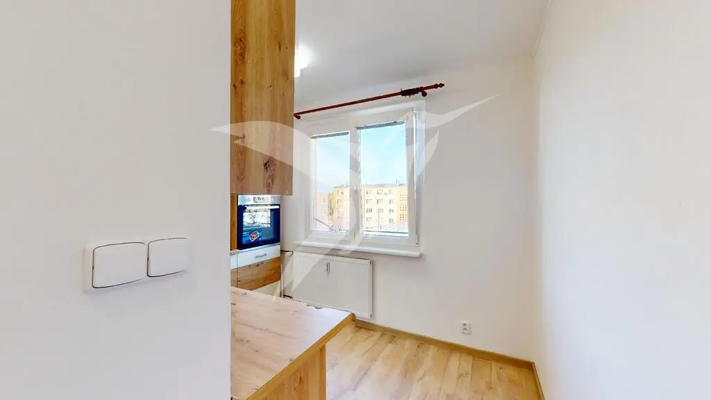 Nemovitost o velikosti 54 m2 se nachází v 4. NP panelového domu bez výtahu a skládá se z předsíně, pokoje včetně kuchyňské linky, samostatného pokoje, průchozího pokoje, koupelny a samostatné toalety a součástí je i zděný sklep umístěný v suterénu domu. Součásti vybavení je kuchyňská linka se spotřebiči (myčka, elektrická trouba, sklokeramická deska + digestoř). Vytápění a teplá voda jsou zajištěny dálkově. Energie se přepisují na nájemce.