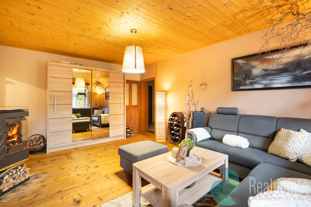 Dům je dispozičně řešen tak, aby poskytoval komfortní a praktické bydlení. V přízemí se nachází zastřešená veranda se vstupní chodbou, kuchyně, prostorný obývací pokoj s krbovými kamny, pokoj pro hosty, koupelna s vanou a WC, technická místnost a komora. Toto uspořádání umožňuje pohodlné každodenní fungování domácnosti a dostatek úložných prostor. V podkroví domu se nachází galerie, další pokoj, ložnice s lodžií a samostatné WC, což zajišťuje soukromí i komfort pro všechny členy rodiny.