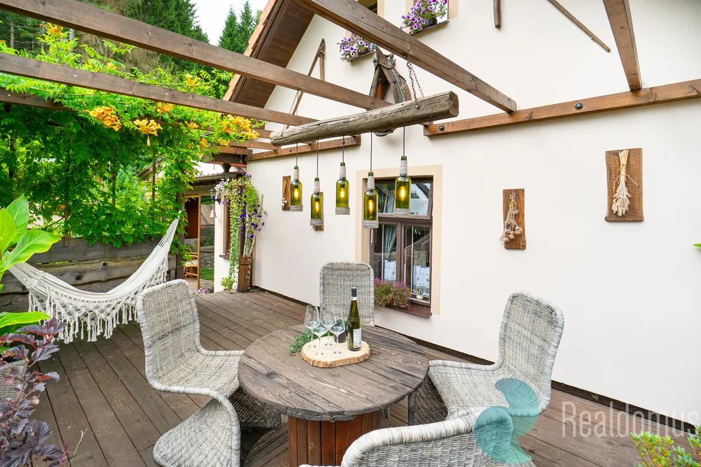 Nemovitost nabízí řadu praktických i estetických výhod. Udržovaná zahrada s vlastní studnou, menším jezírkem a bazénem je ideální pro relaxaci i volnočasové aktivity. Samostatná zděná dílna poskytuje prostor pro kutily nebo hobby činnosti. K dispozici je garáž, kryté parkovací stání a sklepní prostory, krytá veranda a terasa zase nabízejí příjemné místo k posezení. Nízké provozní náklady zajišťují ekonomické a komfortní bydlení.