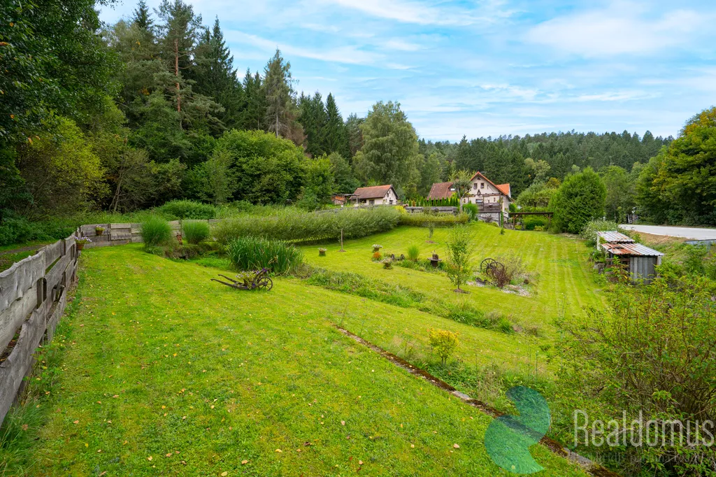 Nabízím Vám ve výhradním zastoupení majitele prodej rodinného domu na klidném okraji obce Nahořany, nedaleko Českého Krumlova. Dům o dispozici 4+1 nabízí krytou verandu, útulnou terasu a rozlehlý pozemek, který poskytuje dostatek soukromí a prostor pro odpočinek i aktivní trávení volného času. Pečlivě udržovaná zahrada s menším jezírkem a několika příjemnými zákoutími je ideálním místem pro relaxaci či rodinné posezení. Součástí nemovitosti je také samostatná dílna, která potěší každého kutila nebo tvořivého ducha.