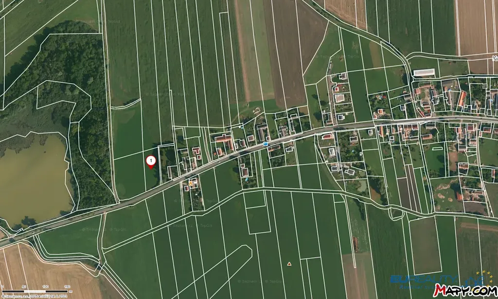 Pozemek obdélníkového tvaru o rozměrech cca 93