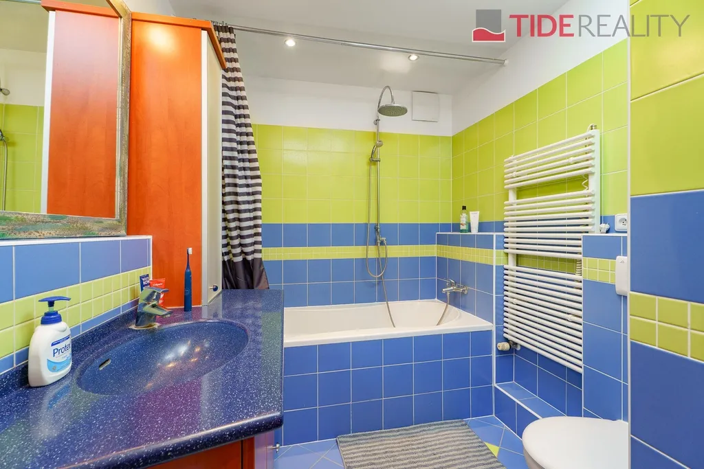 Velice příjemný a tichý byt nacházející se v 3. patře nového domu s výtahem nabízí prostorný obývací pokoj s krbem, plně zařízenou kuchyni, 3 ložnice, pracovnu, šatnu, 2 balkony, 2 koupelny, další samostatnou toaletu a komoru. Vestavěné skříně, dřevěné podlahy, vysoká kvalita provedení. Byt je prakticky plně zařízený. Celková obytná plocha tohoto zařízeného bytu činí 160 m2. Součástí nájmu je sklepní koje a jedno parkovací místo v podzemních garážích. Případné druhé parkovací místo místo je za poplatek. Byt je celý orientovaný do zeleně a nachází se pouze 5 min chůze od stanice metra Anděl. Nájemné 53.000 + 9.000 zálohy na služby. Volný ihned.