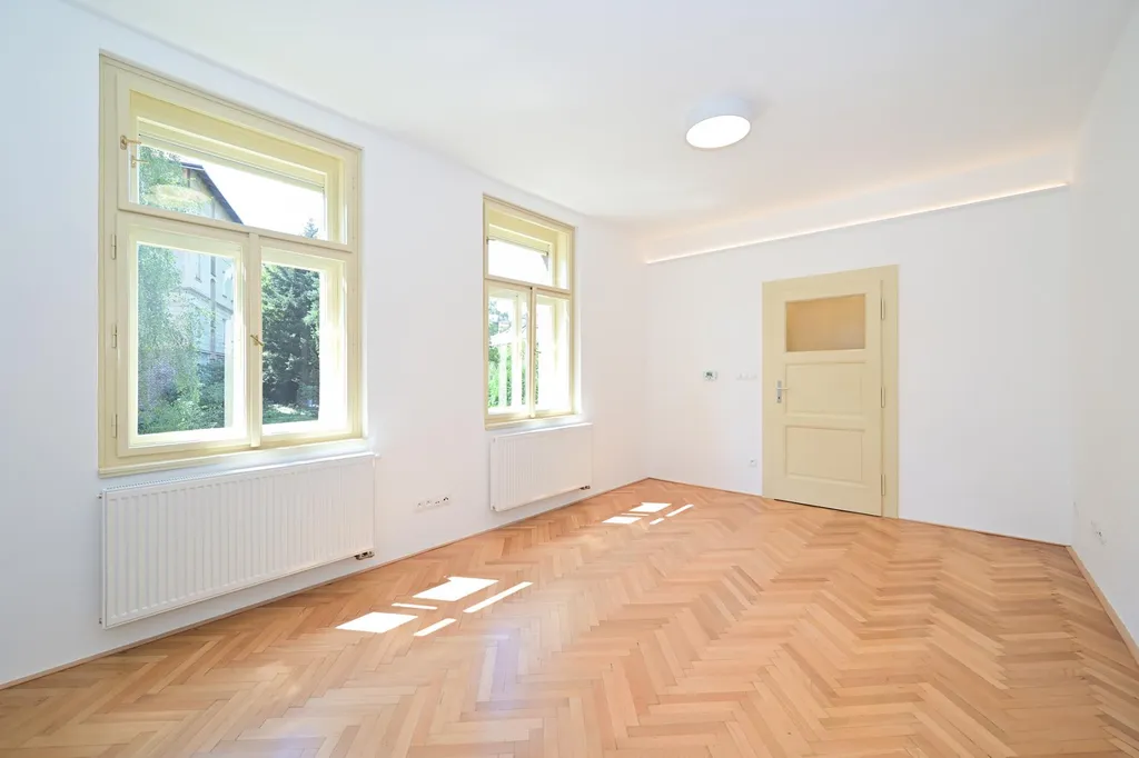 Bydlení s nádechem romantiky první republiky v historickém kontextu lokality. Velmi zdařilá rekonstrukce činžovního domu, v každém bytě citlivá kombinace renovovaných původních prvků s moderním vybavením kuchyně a koupelny. Plně vybavená kuchyně, nový kondenzační plynový kotel se zásobníkem TUV. Možné dovybavit vestavěnou skříní a pračkou. Krásná dřevěná podlaha, kvalitní kuchyňská linka se spotřebiči AEG, lednice, mrazák, indukční dvojvařič, kombi trouba s možností pečení a mikrovlnky, pračka. Okna vybavena elektrickými roletami. K dispozici hezký čistý sklep.