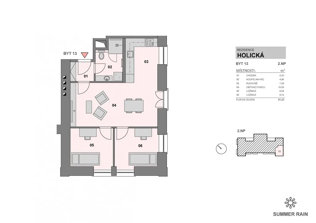 Byt je ideální volbou pro zájemce, kteří hledají moderní bydlení v klidné lokalitě s výbornou dostupností.