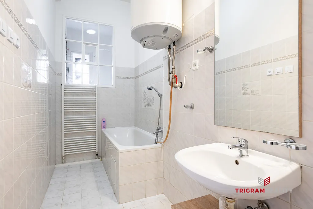 Moderní kuchyňská linka je vybavena elektrickou troubou, varnou deskou, digestoří, myčkou a dřezem. Z kuchyně i ložnice je příjemný výhled do klidného vnitrobloku. Koupelna disponuje vanou a umyvadlem se skříňkou. Elektrický bojler zajišťuje ohřev vody, vytápění je dálkové.