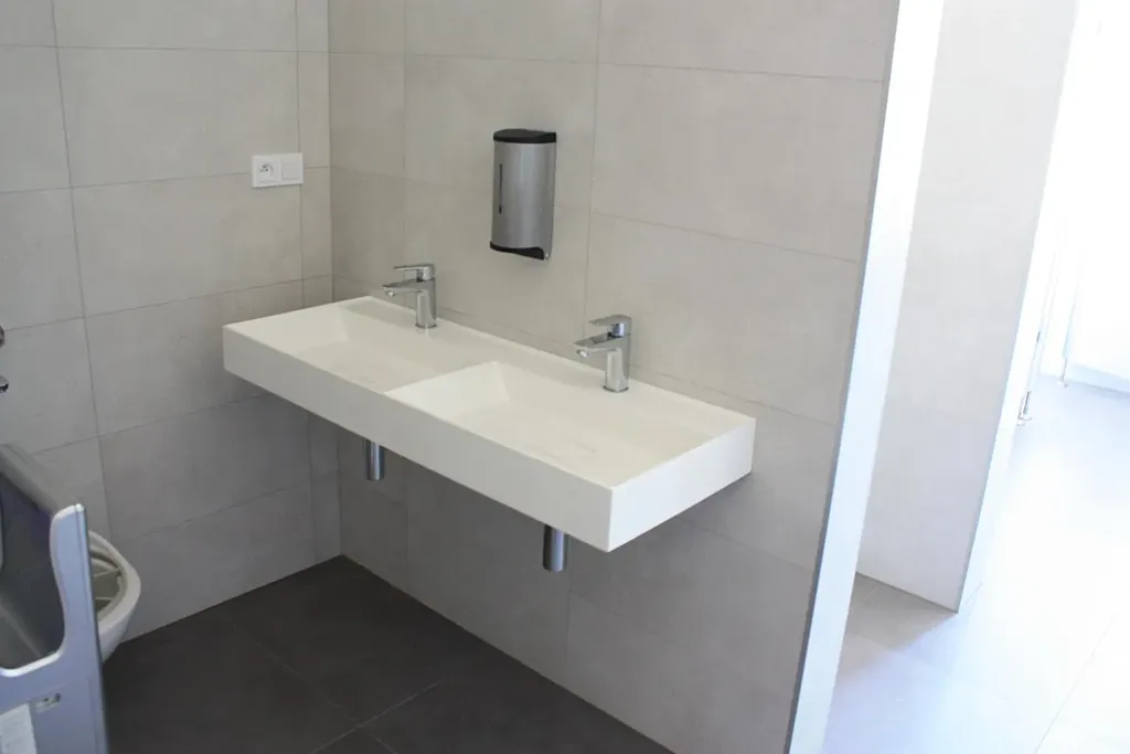 V přízemí je restaurace otevřená po dobu obědů s výběrem jídel, prodejna značkových vín, relaxační centrum. kadeřnictví.