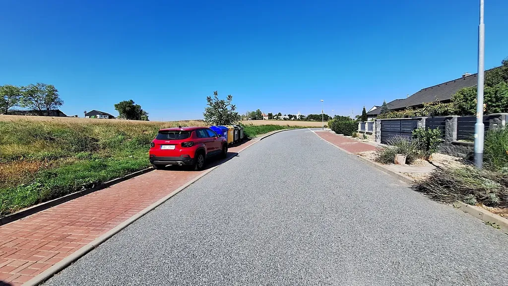 Velice mírně zvlněný stavební pozemek je určený k výstavbě samostatně stojícího rodinného domu. Výhled z domu je směrem na východ, orientace zahrady je na západ. Zahrada bude končit pásem veřejné zeleně včetně workout hřiště.
