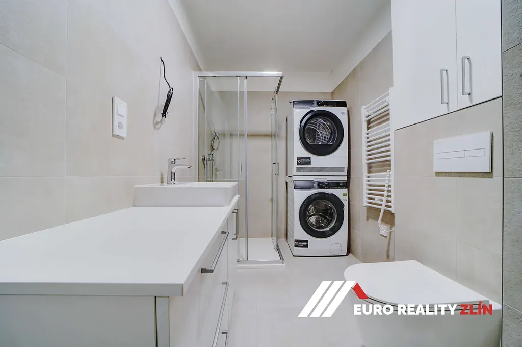 Byt je částečně zařízený a připravený k okamžitému nastěhování. Součástí vybavení je kuchyňská linka se spotřebiči (varná deska, trouba, lednice, myčka, odsavač par), šatní skříně, jídelní stůl, postel, pračka, sušička. O příjemné klima se postará klimatizace, podlahové vytápění a praktické žaluzie. K bytu náleží také sklepní kóje.
