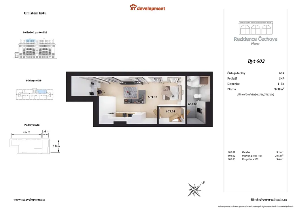 Hledáte komfortní bydlení v centru města s veškerou občanskou vybaveností na dosah? Nabízíme k dlouhodobému pronájmu světlý byt o dispozici 1+kk a výměře 38 m², umístěný v 6. nadzemním podlaží nově dokončeného bytového domu Rezidence Čechova.